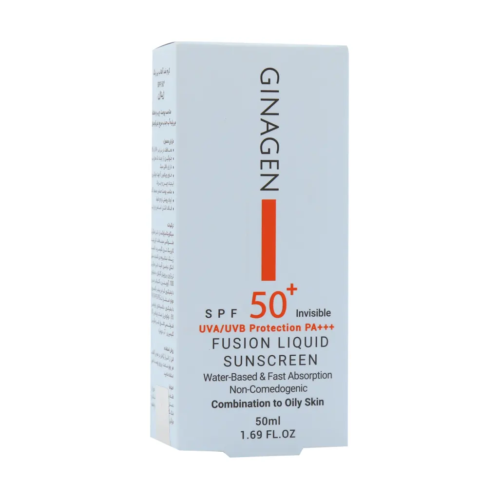 لیکوئید ضد آفتاب بی رنگ پوست چرب SPF50 ژیناژن 50 میلی لیتر