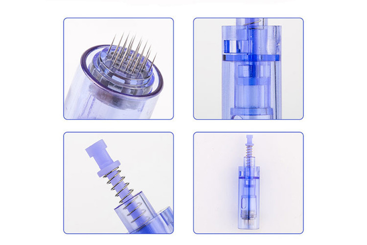 رنگ این کارتریج ها به رنگ آبی بوده و دارای پایه های بلند می باشد. این کارتریج ها به صورت منظم با چرخش غلتکی پرسرعت در موضع تحت درمان کانال های کوچک و ریز در سطح پوست به وجود می آورد. این روش یک ابزار مفید و موثر جهت انتقال مواد و داروهای مغذی به لایه های عمقی پوست محسوب می شود. تا عملکرد و نتایج داروها و سرم های درمانی و مراقبتی را چندین برابر افزایش دهد.