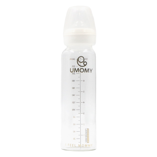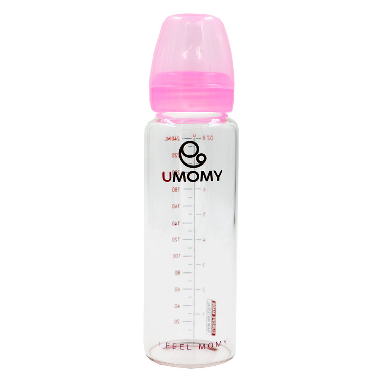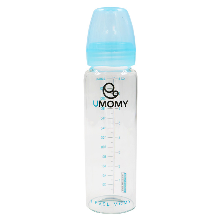 شیشه شیر پیرکس یومامی UMOMY مدل کلاسیک آبی ظرفیت 240 میل با استفاده از اخرین تکنولوژی روز دنیا طراحی و تولید شده است . این بطری ها در سه سایز 60 و 120 و 240 میل در دسترس می باشد . سر شیشه های استفاده شده در این بطری ها از نوع سیلیکون کاملا بهداشتی و مطابق با آخرین استانداردها تهیه و تولید شده است. درپوش این محصول به نحوی طراحی شده که با برجستگی خاص خود به دقت روی سرشیشه را پوشش داده و مانع از نشت شیر یا جذب آلودگی شود.