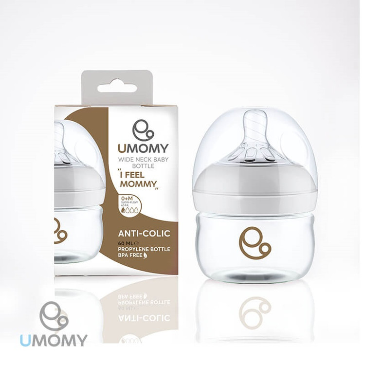 شیشه شیر پلی پروپیلن دهانه عریض یومامی 0 تا 6 ماه 60 میلی لیتری
