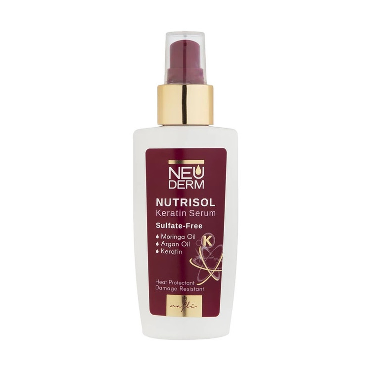 سرم مو کراتینه فاقد سولفات نئودرم، تغدیه، ترمیم و نرمکننده برای موهای آسیب دیده است. این سرم علاوه بر دارا بودن پروتئین کراتین که نقش اساسی در درمان شکنندگی و وز شدگی مو دارد، حاوی روغن مورینگا است که سرشار از روی بوده و به تولید کراتین در سطح پوست کمک میکند. از مزایای دیگر این روغن، مرطوبکنندگی، خواص ضد التهابی و محافظتی است. بیوتین موجود در این محصول، به استحکام، شادابی، درخشندگی و ضخامت موها کمک فراوانی میکند و در رشد مجدد موها تاثیر بسزائی دارد.