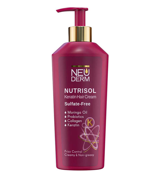 کرم مو کراتینه فاقد سولفات نوتریسل نئودرم یکی از محصولات جدید در حوزه محصولات کراتین نئودرم است. این کرم حاوی مواد مؤثره مفیدی همچون کراتین، روغن کرچک، روغن مورینگا، روغن آرگان، شی باتر، کلاژن و پروبیوتیک غنی شده است. که به خوبی میتواند رشتههای مو را تقویت و تغذیه کرده و حس شادابی و نرمی به موها ببخشد.