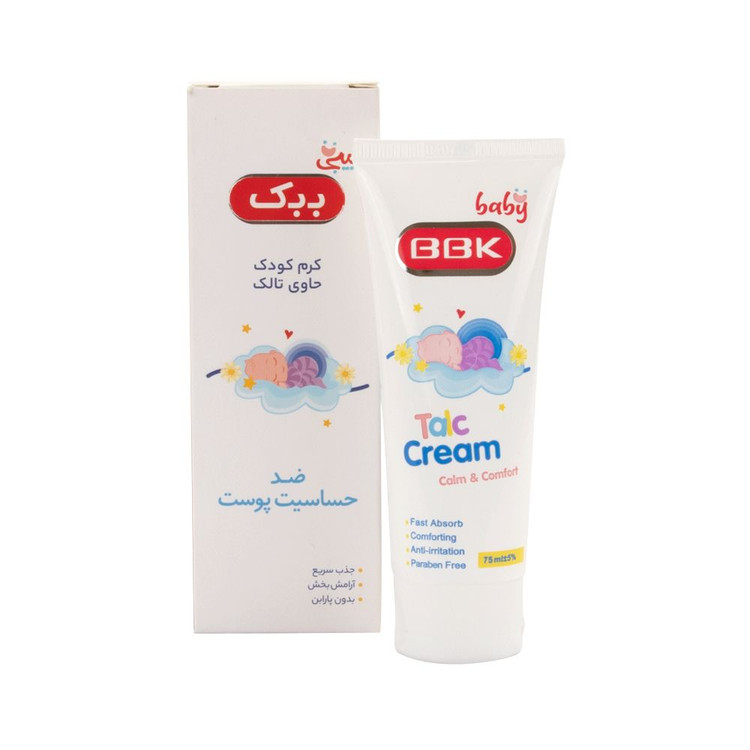 کرم تالک کودک بیبیببک کارایی مشابهی با پودر بچه دارد با این تفاوت که فاقد خطر بیماری تنفسی در اثر استنشاق پودر است. این محصول با ایجاد یک لایه، از اصطکاک پوستی جلوگیری کرده و با جذب رطوبت لازم، مانع ازعرقسوز شدن پوست کودک میشود.