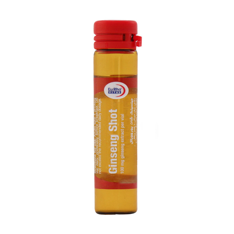 ویال خوراکی جینسینگ شات یوروویتال حاوی جنسینگ و ویتامین سی به افزایش توانمندی ذهنی و فیزیکی بدن، تقویت عملکرد جنسی و حفظ سلامت سیستم ایمنی بدن کمک میکند. همچنین باعث افزایش سطح انرژی، کاهش خستگی ذهنی و افزایش هوشیاری میشود و با بهبود عملکرد مغزی، حافظه، تمرکز و یادگیری را تقویت میکند. این محصول به صورت ۶ ویال جداگانه بوده که در هر ویال ۱۰ میلی لیتر است.