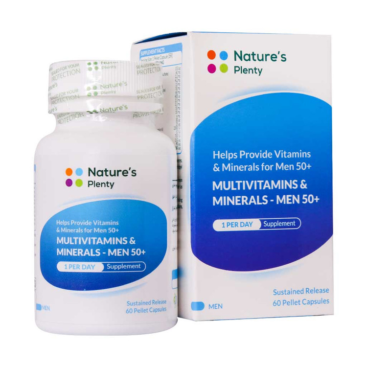انتخاب بهترین قرص مولتی ویتامین تنها به دوران کودکی شما محدود نمیشود، بلکه ممکن است در پنجاه سالگی نیز برای خرید آن اقدام نمایید. کپسول مولتی ویتامین و مینرال آقایان بالای ۵۰ سال نیچرز پلنتی سرشار از مواد مغذی است که یک آقا در سن ۵۰ سالگی، ممکن است به هر دلیلی به آن نیاز داشته باشد. این محصول با داشتن مواد مغذی مورد نیاز آقایان به تقویت سیستم ایمنی، حس سرزندگی و نشاط، جلوگیری از سرطان پروستات، افزایش توانایی و قوای جنسی، تقویت قدرت باروری، تقویت حافظه و تمرکز و سلامت قلب و عروق کمک موثری میکند. فرم کپسول مولتی ویتامین و مینرال آقایان بالای ۵۰ سال نیچرز پلنتی به صورت کپسول با پلتهای آهسته رهش بوده که جذب بالایی دارد و هیچ عوارض گوارشی به دنبال ندارد.