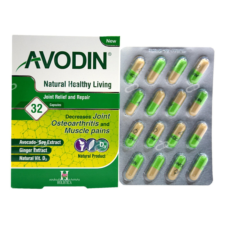 قرص avodin با منشا گیاهی در کاهش التهابات مفاصل و بازسازی غضروفها نقش دارد. همچنین آوودین در کاهش درد مفاصل به ویژه در کاهش سرعت پیشرفت بیماری آرتروز نقش بسزایی دارد. مواد گیاه تشکیل دهنده کپسول آوودین شامل سویا، آووکادو و زنجبیل است. مهم ترین خواص زنجبیل موجود در این محصول کاهش درد است، این گیاه با خاصیت ضد التهابی خود میتواند در تسکین دردهای مفصلی و دیسک کمر موثر باشد. عصاره آووکادو موجود در آوودین نیز با افزایش کلاژن سازی منجر به بازسازی غضروف و کاهش سرعت پیشرفت آرتروز، دردهای مفصلی و دیسک کمر میشود. در آخر اینکه سویا نیز از مواد غذایی موثر در درمان درد و التهاب مفاصل است.