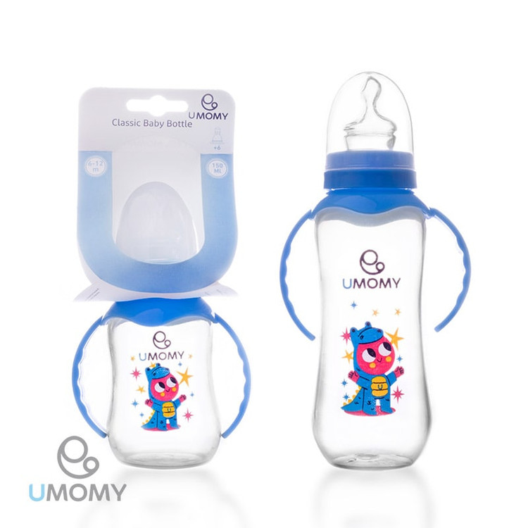 شیشه شیر پلی پروپیلن دسته دار یومامی 150 میلی لیتر (+6 ماه)