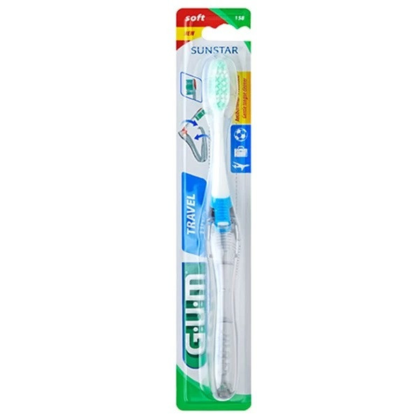 مهمترین مزیت مسواک نرم مسافرتی جی یو ام کد 158 حمل راحت و بهداشتی آن است که در این مسواک با دستهای تاشو و با برداشتن درپوش روی دسته، این امکان را میدهد که سر مسواک درون محفظهای جا گرفته و با بستن آن، مسواک از آلودگی دور خواهد ماند، همچنین در پشت مسواک تارهای نرم و کوتاهی برای شستشوی سطح زبان نیز وجود دارد.