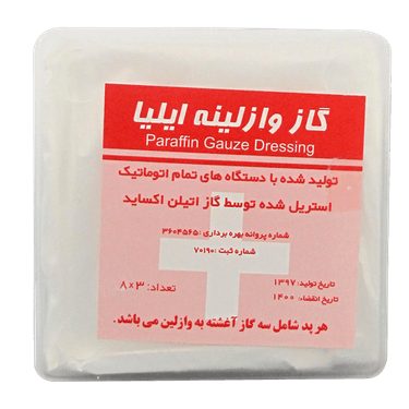 گاز وازلینه ایلیا آغشته شده به وازلین سفید و بهداشتی بوده که کاملا غیر سمی، فاقد حساسیت و سوزش بر روی پوست میباشد. این محصول از جنس پارچه تار و پودی بوده و ۱۰۰% از پنبه خالص تهیه میشود. تفاوت اصلی گاز وازلینه با سایر گازهای استریل کاربرد آن میباشد. از گاز وازلینه در هنگام جراحتهای ناشی از سوختگی استفاده میشود. زیرا به علت توزیع یکنواخت وازلین بر روی سطح این محصول و همچنین مرطوب نگه داشتن محیط، گاز به زخم نمیچسبد. این محصول توسط دستگاههای تمام اتوماتیمک ساخته شده و توسط گاز اتیلن اکساید استریل شده و بدون سرنخ آزاد یا پرز میباشد. این گاز چه در هنگام استفاده و چه قبل از آن کاملا بدون بو و بدون هیچگونه ماده شیمیایی بوده و عاری از هرگونه آلودگی فیزیکی میباشد. این محصول مربع شکل و در ابعاد ۱۰ × ۱۰ به بازار عرضه میشود. گاز وازلینه را به علت استریل بودن میتوان به جای گازهای دندانپزشکی نیز استفاده کرد. این محصول یکی از اجزای اصلی جعبه کمکهای اولیه بوده و به علت مرطوب بودن سبب تبادل هوا و اکسیژن بین زخم و محیط میشود. این گازها به هیچ عنوان به زخم نچسبیده و محافظ خوبی در برابر ورود باکتریها و سایر عفونتها به بدن میباشند.