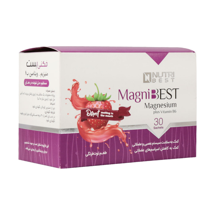 ساشه مگنی بست نوتری بست محصولی بسیار مقوی و مغذی، سرشار از مواد و ترکیبات موثر از قبیل منیزیم و ویتامین B۶ است که از ابتلا به عوارض و اختلالات عضلات پیشگیری کرده و همچنین سبب افزایش میزان استقامت، استحکام و انعطاف پذیری عضلات نیز میشود. از طرفی این قرص باعث تقویت سیستم ایمنی بدن میشود و به انجام واکنشهای شیمیایی بدن کمک میکند و سبب بهبود عملکرد آن میشود. ویتامین ب ۶ موجود در این محصول به بدن شما در برابر عفونت کمک میکند و در پیشگیری و درمان نوروپاتیهای محیطی و کم خونی سیدروبلاستیک موثر است.