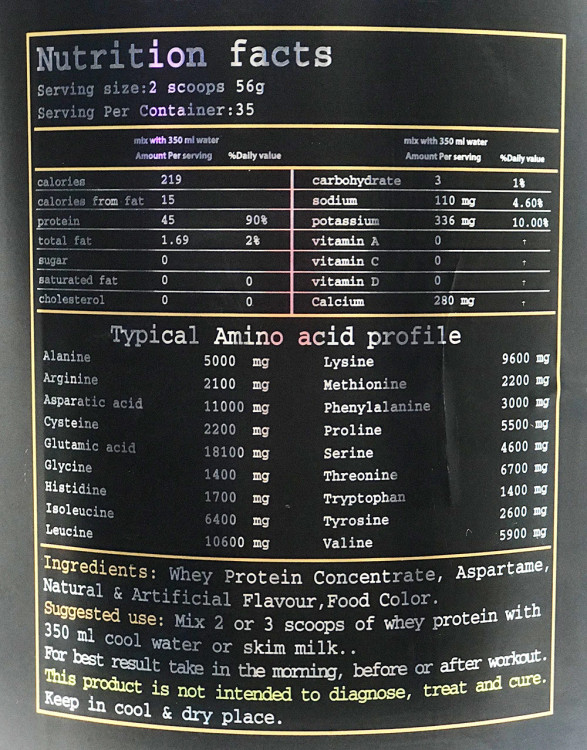 وی ۱۰۰٪ پرمیوم ال اس پی دارای کمترین میزان چربی و کربوهیدرات بوده و در دورههای عضلهسازی و چربیسوزی برای ورزشکاران بسیار مناسب خواهد بود.