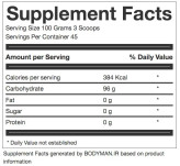 این مکمل با امکان ترکیب با انواع آبمیوه، شیر و… دارای ۹۶ گرم کربوهیدرات غنی در هر اسکوپ ۱۰۰ گرمی میباشد. این محصول با دارا بودن مالتودکسترین و دکستروز مونوهیدرات در افراد اکتومورف لاغر اندام کالری بالایی را در جهت بهبود روند افزایش وزن و عضلهسازی فراهم مینماید.