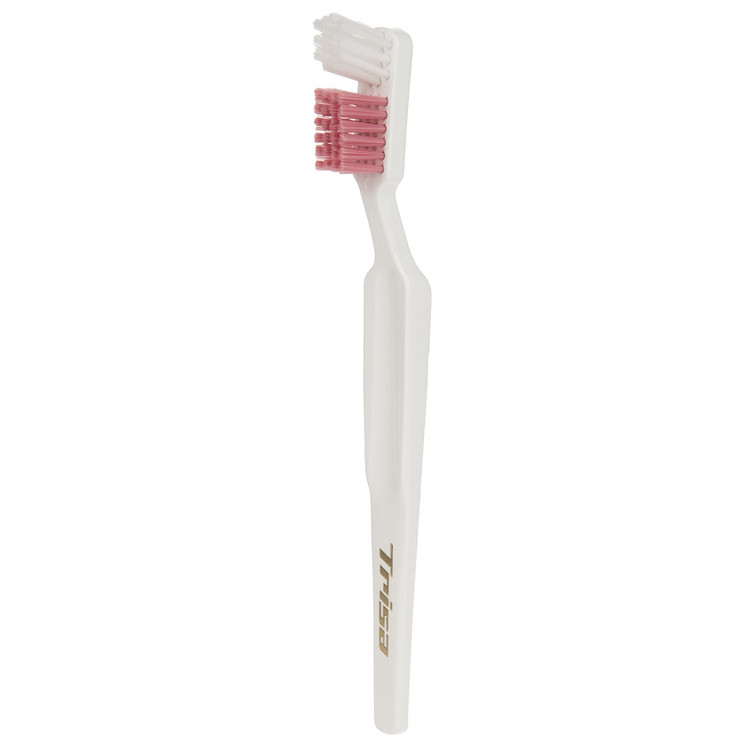 مسواک دنتور براش مخصوص دندان مصنوعی تریزا Denture Brush Toothbrush Trisa، تمیز کردن روزانه دندان های مصنوعی برای جلوگیری از باقی ماندن ذرات غذایی و لک برداشتن دندان ها ضروری است. لک برداشتن دندان ها می تواند باعث مشکلاتی همچون زشت شدن ظاهر دندان، بوی بد دهان، عفونت در دهان و تحریک (سوزش و خارش) بافت هایی که زیر دندان مصنوعی قرار دارند، شود. شستشوی مرتب بعد از هر وعده غذا یا قبل از خواب موجب از بین رفتن آلودگی ها خواهد شد.