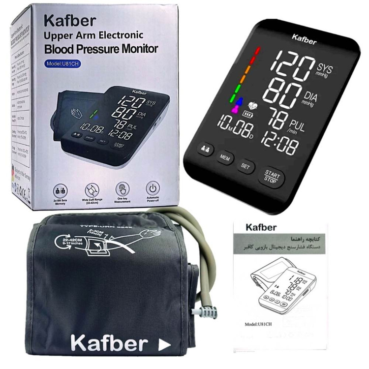 18 ماه گارانتی 2.لیبل اصالت 3.طراحی کافبر آلمان 4.کارایی و طول عمر بالا 5.قابلیت تشخیص آریتمی 6.قابلیت نمایش فشارخون 7.قابلیت نمایش ضربان قلب 8.خاموشی خودکار3 دقیقه بعد از استفاده 9.قابلیت ذخیره اطلاعات برای دو کاربر 10.دارای مجوزCA,FDA,IMED
