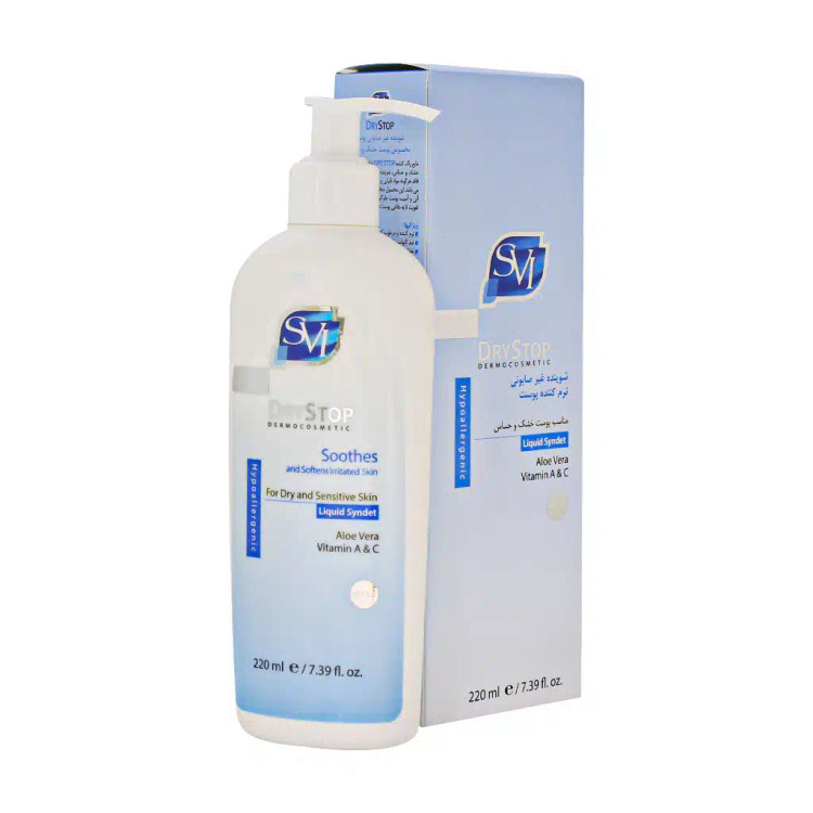 پن مایع غیرصابونی درای استاپ اس وی آی محصولی از برند معتبر SVI است که برای شستشوی پوستهای خشک و حساس کاربرد دارد. مایع پاک کننده Dry Stop غیرصابونی و بسیار ملایم بوده و فاقد هرگونه مواد قلیایی و سازگار با PH طبیعی پوست است. این محصول به عنوان محافظ تعادل پوست عمل کرده و از کمآبی و آسیب پوست جلوگیری مینماید و همچنین موجب تقویت لایه دفاعی پوست در هنگام تمیزی آن میشود. پن مایع Dry Stop اس وی آی حاوی عصاره آلوئهورا و ویتامینهای A و C است و 220 میلی لیتر حجم دارد بنابراین تا مدت زیادی میتوانید از این شوینده پوست استفاده کنید و از این جهت کاملا مقرون به صرفه است. پوستهای خشک و حساس هرگز نباید از صابون و مواد قلیایی برای شستشوی پوست خود استفاده کنند چون این مواد موجب بیشتر خشک شدن پوست میشوند و در نتیجه ممکن است ایجاد آلرژی یا اگزمای پوستی کنند. مایع پاک کننده Dry Stop را روزی 1 بار و در صورت لزوم روزی 3 بار میتوان استفاده کرد.
