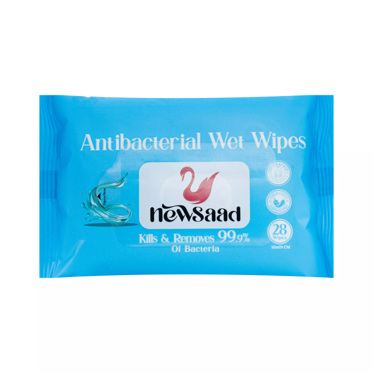 28 عدد دستمال مرطوب داخل بسته بندی بصورت بالشتی