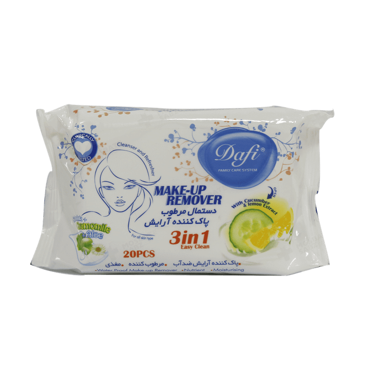 دستمال مرطوب پاک کننده آرایش ۲۰ عددی دافی پاک کننده آرایش ضدآب بوده در حین مرطوب کنندگی، مغذی پوست است.