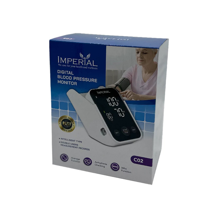فشار سنج دیجیتال امپریال مدل C02 تحت لیسانس آمریکا مناسب برای سنجش فشار خون و ضربان قلب به صورت اتوماتیک از طریق بازو می باشد. طول فشار سنج بازویی امپریال 10 سانتیمتر، عرض آن 8 سانتیمتر و ارتفاع 15 سانتیمتر، همچنین وزن فشار سنج 367 گرم می باشد که از نظر ابعاد و وزن برای یک فشار سنج قابل قبول می باشد. فشار سنج امپریال تنها با یکبار فشردن دکمه پاور شروع به اندازه گیری فشار خون و ضربان قلب می کند و در کمتر از یک دقیقه نتیجه را اعلام می کند. یکی از نکات مهم این محصول کم صدا بودن آن هنگام سنجش فشار خون می باشد. پایین صفحه نمایش امپریال 3 دکمه وجود دارد که دکمه وسط پاور دستگاه است برای روشن و خاموش شدن دستگاه مورد استفاده قرار می گیرد و دو دکمه هم در سمت چپ و راست قرار دارد که دکمه سمت راست برای مشاهده کردن نتایج فشار خون می باشد و دکمه سمت چپ نیز برای تنظیمات دستگاه مورد استفاده قرار می گیرد. در کناره های امپریال جایگاه قرار دادن کاف و آدابتور دستگاه تعبیه شده است. فشار سنج دیجیتال امپریال دارای قابلیت های مناسب و کاربردی می باشد. مهم ترین ویژگی امپریال تشخیص آریتمی قلبی می باشد. از دیگر قابلیت های این محصول ذخیره فشار برای دو کاربر به صورت جدا به تعداد 120 عدد می باشد که دو شخص میتوانند نتیجه فشار خون را به صورت جدا و با تاریخ و ساعت ثبت نمایند. همراه فشار سنج دیجیتال امپریال مدل C02 هم باتری و هم آدابتور با کابل تایپ سی قرار داده شده است که بتوانید به راحتی هم با برق و هم با باتری از آن استفاده نمایید. کاف پارچه ای همراه فشار سنج امپریال مناسب برای دور بازو 22 الی 40 سانتیمتر است. فشار سنج امپریال دارای قابلیت اعلام نتایج به صورت سخنگو فارسی می باشد که این قابلیت بسیار کارآمدی می باشد.