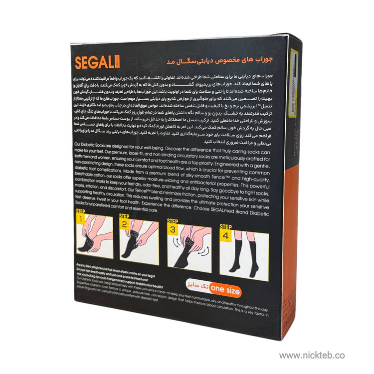 در این محصول، الیاف نرم، رطوبتبر و هیپوآلرژنیک استفاده شده تا پوست حساس بیماران دچار التهاب، خشکی شدید یا آسیب مکانیکی نشود. سگال در این مدل دقیقاً روی استانداردهای پزشکی تمرکز کرده تا خطر زخم پای دیابتی را به حداقل برساند و جریان خون پا به شکل طبیعی حفظ شود.