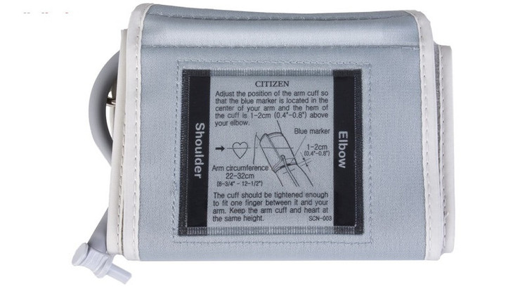 - این دستگاه دارای کاف است. برای استفاده درست و اندازه گیری دقیق باید کاف دستگاه و سنسور در نزدیگی و جلوی بازو روی سرخرگ قرار گیرد. سعی کنید کاف دستگاه را یکی دو سانت بالاتر از قسمت خمیدگی آرنج قرار داهید تا سنسور دقیقا روی سرخرگ قرار گیرد.