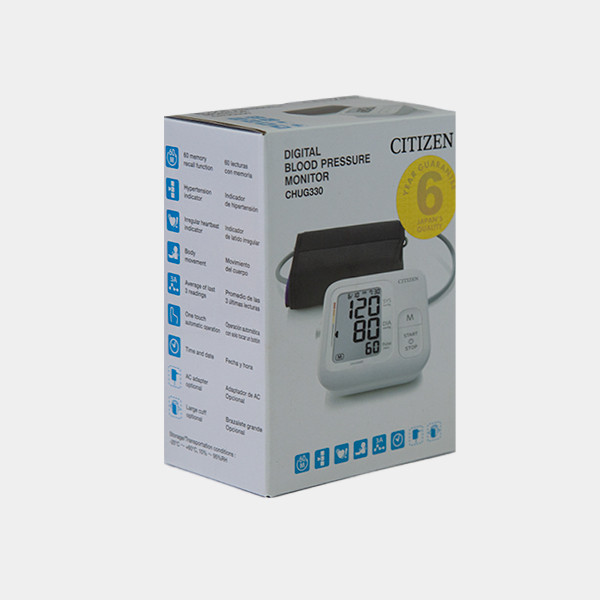 فشار سنج بازویی سیتی زن مدل CHU503 ساخت کشور ژاپن مناسب برای سنجش فشار خون و ضربان قلب به صورت اتوماتیک از طریق بازو می باشد. طول فشار سنج بازویی سیتی زن 15 سانتیمتر، عرض آن 8 سانتیمتر و ارتفاع 10 سانتیمتر، همچنین وزن فشار سنج 290 گرم می باشد که از نظر ابعاد و وزن برای یک فشار سنج قابل قبول می باشد.