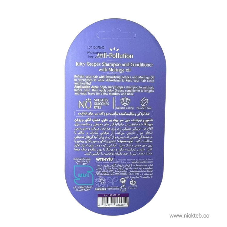 ویژگیهای پک مسافرتی شامپو و نرم کننده انگور ویت یو
