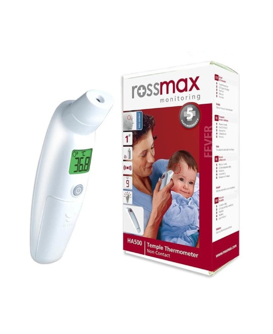 تب سنج دیجیتالی رزمکس مدل HA500 ساخت کمپانیه کشور سوئیس می باشد. این تب سنج قابلیت سنجش تب از فاصله ۵ سانتی متری و بدون تماس به پوست را دارا می باشد، در نتیجه مانع آلودگی تب سنج و پوست می گردد.