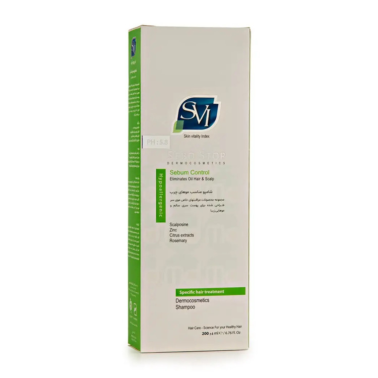 شامپو کنترل کننده چربی اس وی آی چربی پوست سر را تنظیم کرده و از تولید چربی اضافی پوست سر جلوگیری می کند. شامپو اس وی آی ساقه مو را افزایش داده و باعث حالت دهی موها می گردد. این محصول از نفوذ آلودگی در طی روز بر روی موها پیشگیری و خون رسانی در پوست سر را افزایش می دهد. نرمی، لطافت، حالت دهی و شانه پذیری موها را بیشتر کرده و باعث درخشانی و شفافیت موها می گردد.