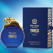 ادکلن زنانه Tigress چیکن گلام Chic’n glam Tigress رایحه خود را از ادکلن معروف و پر طرفدار Coco Mademoiselle وام گرفته است. ظاهر آبی و دایره ای شکل ادکلن تایگرز و همچنین در متفاوت آن که ظاهر ببر را دارد، آن بسیار جذاب است .این ادکلن ساخت کشور بلژیک است و دارای رایحه گل ها و گیاهان معطر دریایی است.