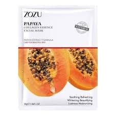 برند زوزو ZOZU که در زمینه ی تولید محصولات مراقبت از پوست فعالیت می کند، ماسک نقابی با عصاره ی پاپایا و کلاژن تولید کرده است که نرم و لطیف کننده ی پوست،روشن کننده و آبرسان و مرطوب کننده ی پوست است.